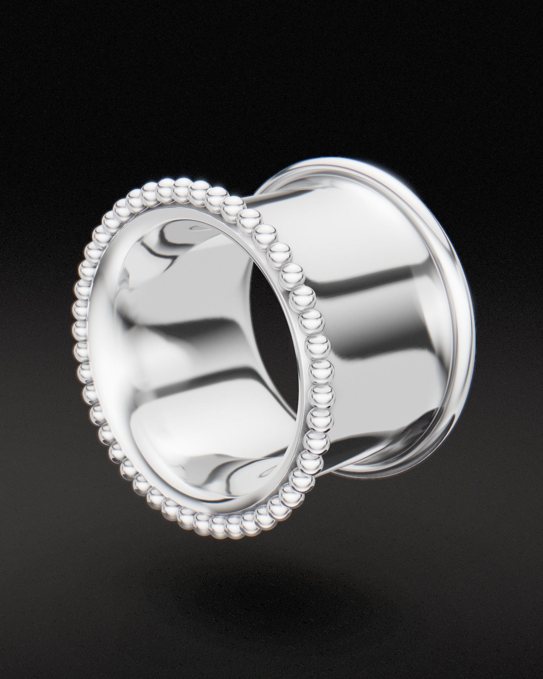 BEADED DOUBLE FLARE EAR TUNNELS - Sterling Silver