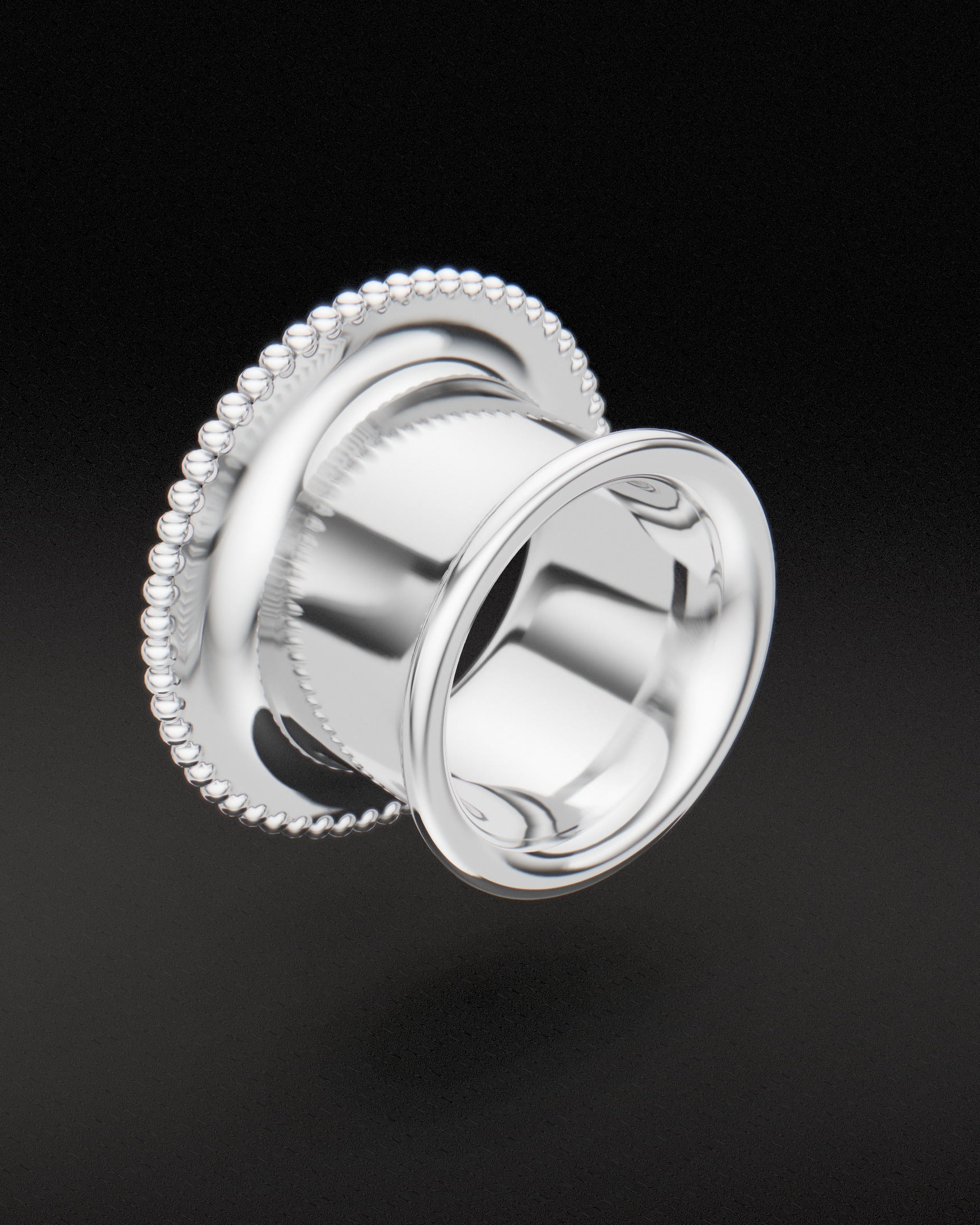 Beautiful 100% Sterling Silver (.925) Mayan Flare Ear Tunnel with an intricate beaded pattern along the edge of the front flare..