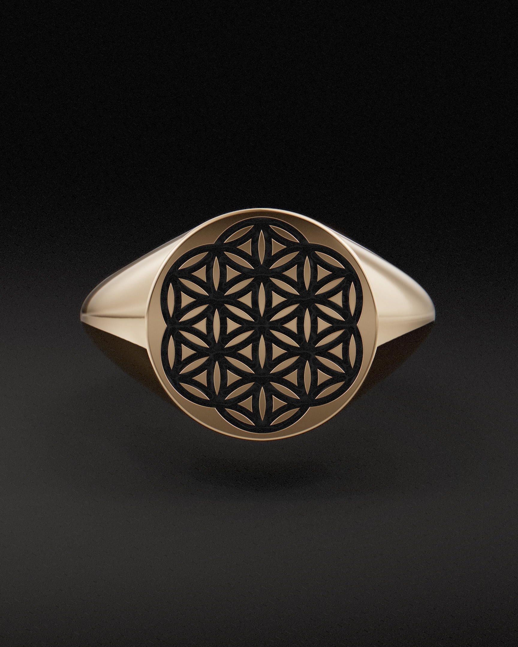 FLOWER OF LIFE SIGNET RING - 9ct & 14ct Gold