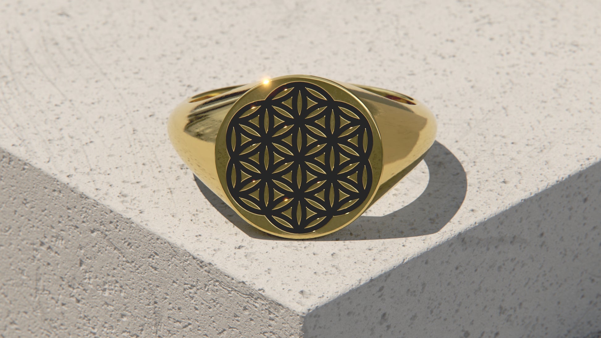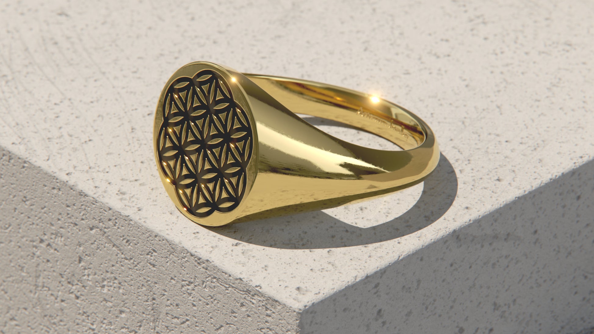 FLOWER OF LIFE SIGNET RING - 9ct & 14ct Gold