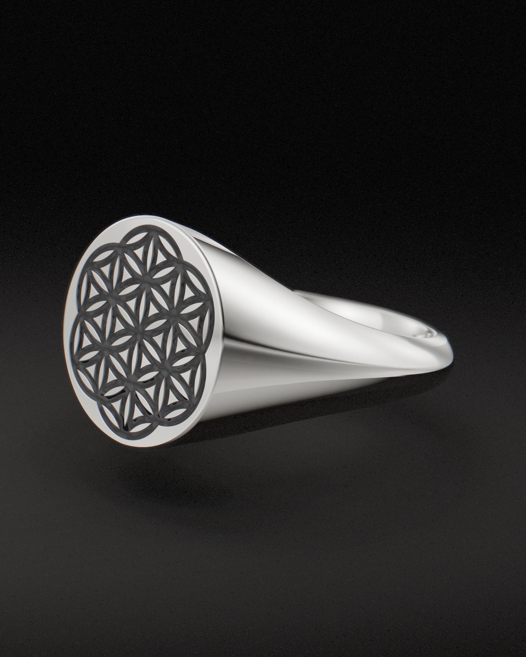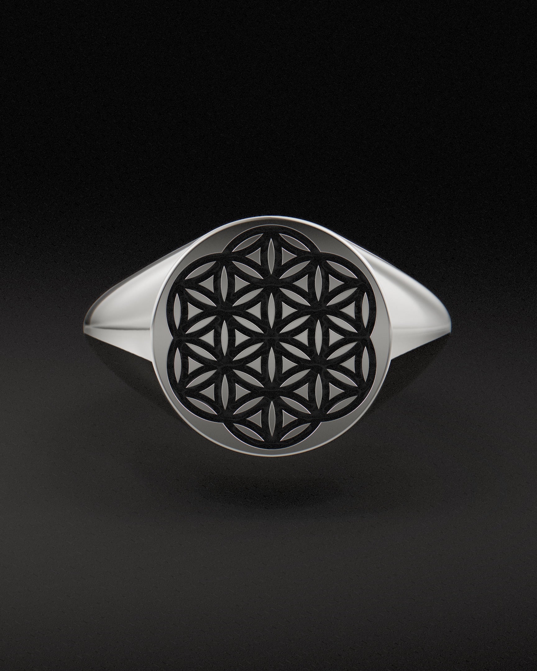 FLOWER OF LIFE SIGNET RING - 9ct & 14ct White Gold